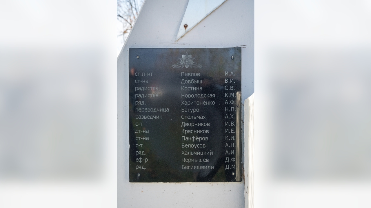 Рядом мемориальная доска со списком группы: