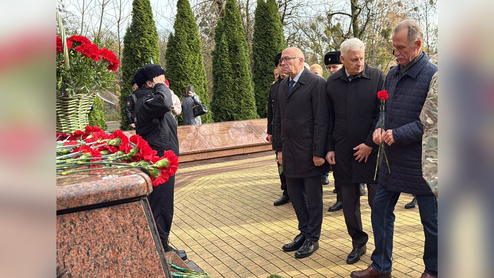 Почётные гости, ветераны военной разведки и участники мероприятия возложили цветы к мемориалу «Воинам-разведчикам» и почтили минутой молчания память героев, которые мужественно отстаивали интересы Отечества в разные времена.