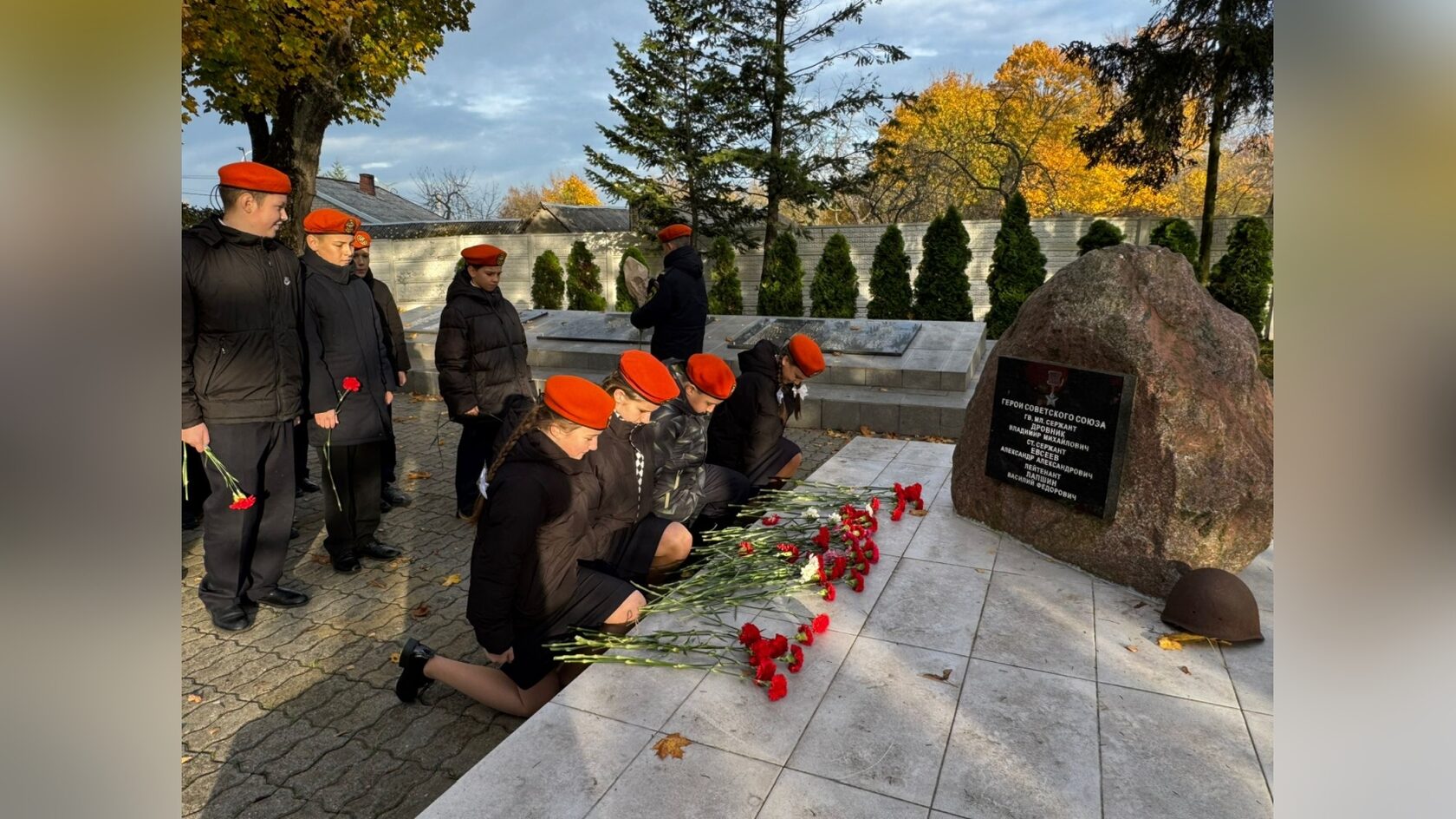 В завершении митинга учащиеся почтили память героя-разведчика и возложили к памятному месту красные гвоздики — скромный знак уважения и вечной благодарности всем военным разведчикам, известным и безымянным.